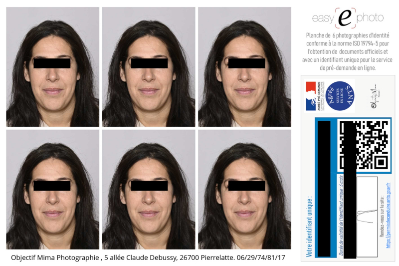 - Photos Type ANTS (permis de conduire ou titre de séjour) : 14€ la planche de 6 photos.